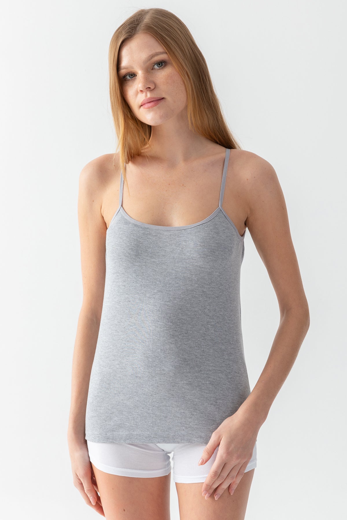 Kadın GRİ Basic Regular Ip Askılı Pamuk Ribana Atlet
