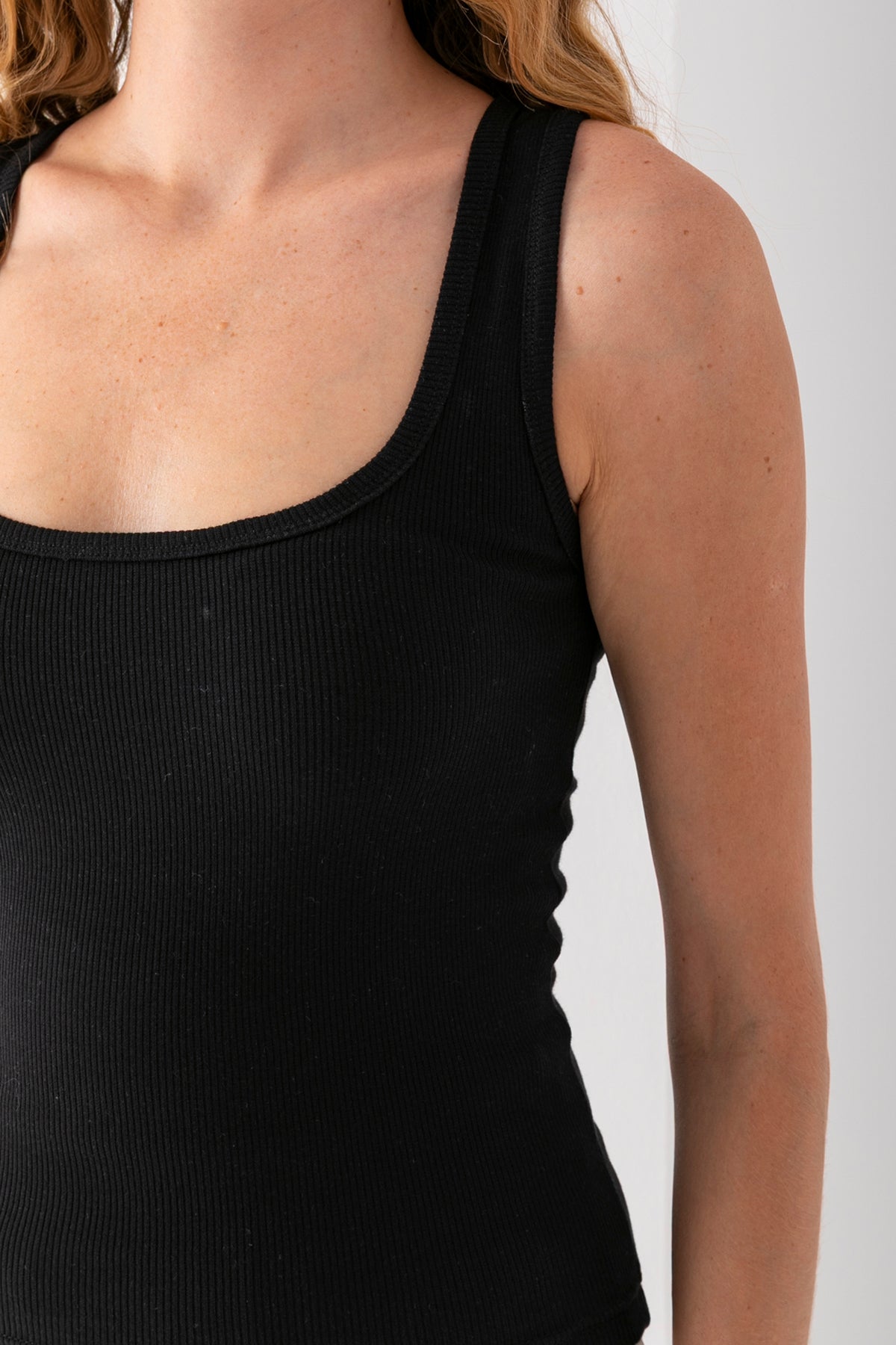 Kadın Siyah Fitilli Kalın Askılı Havuz Yaka Basic Bluz